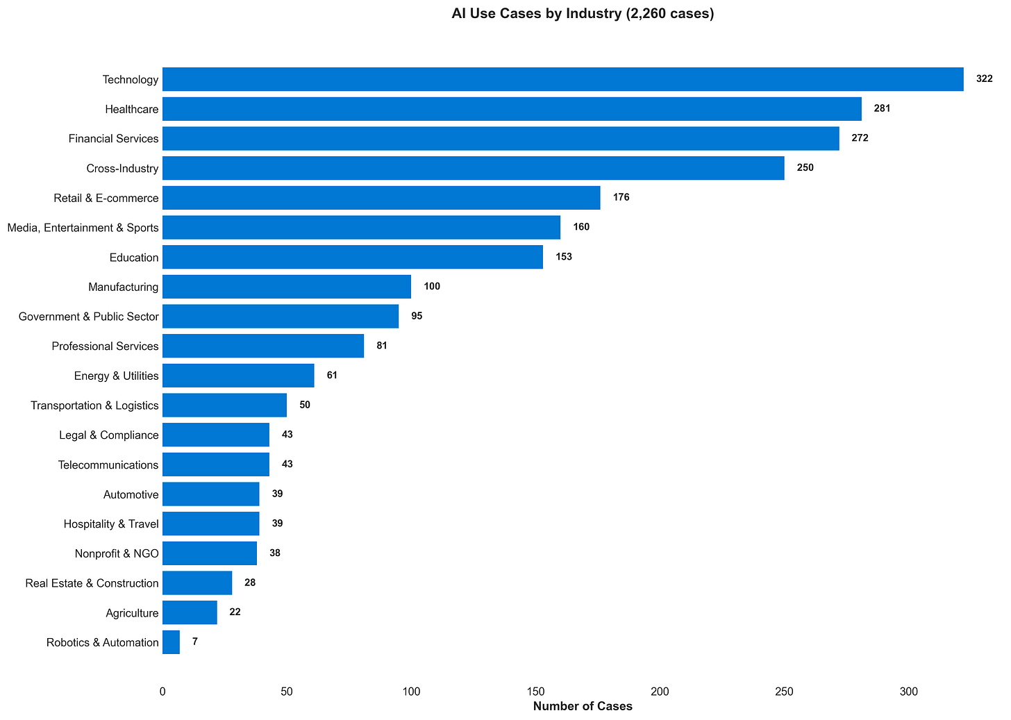 Technology, Financial Services, Healthcare, Retail, and Manufacturing were the biggest adopters. Government, Professional Services also showed strong momentum, not to mention Agriculture often with nonprofit and social-good angles.